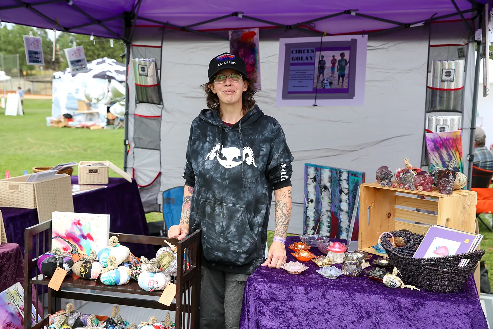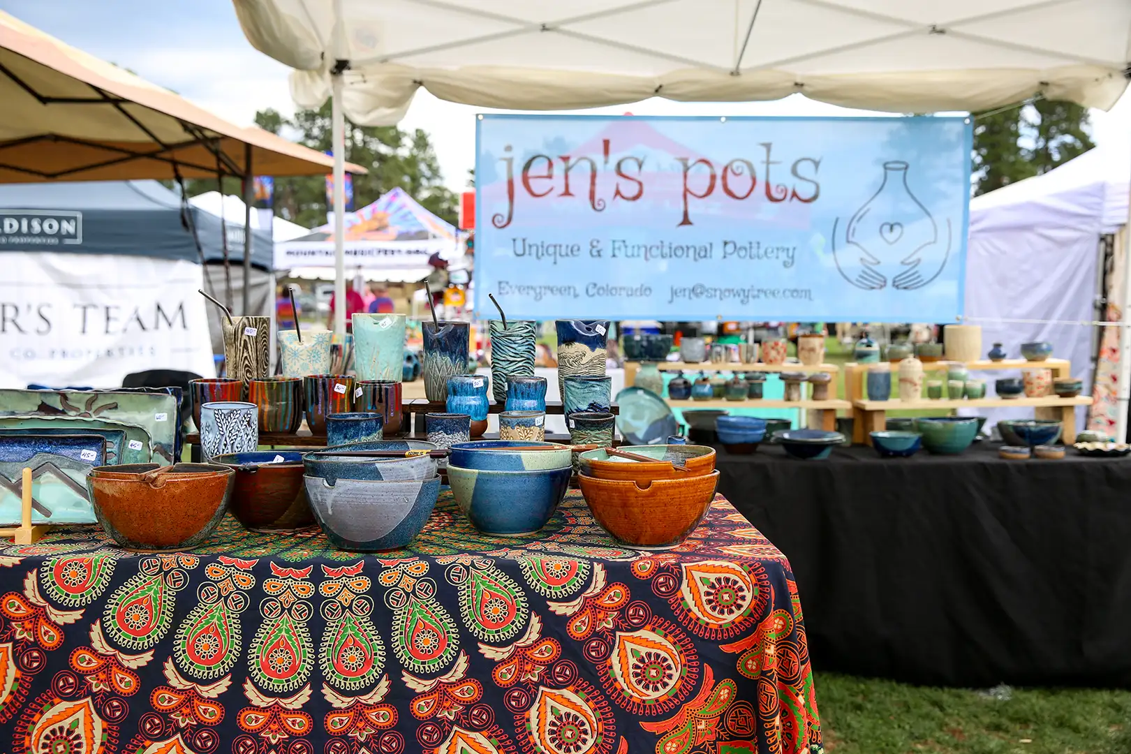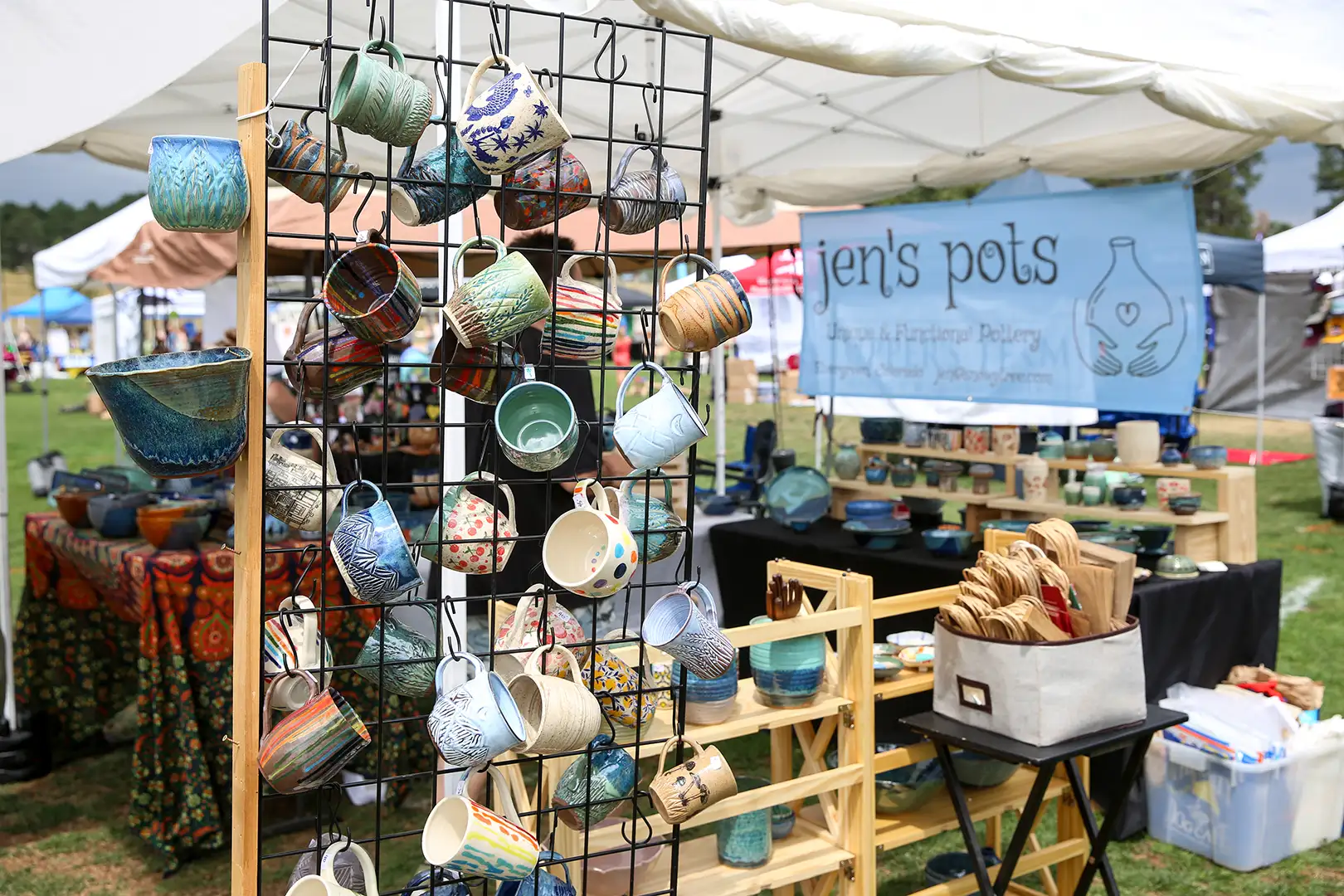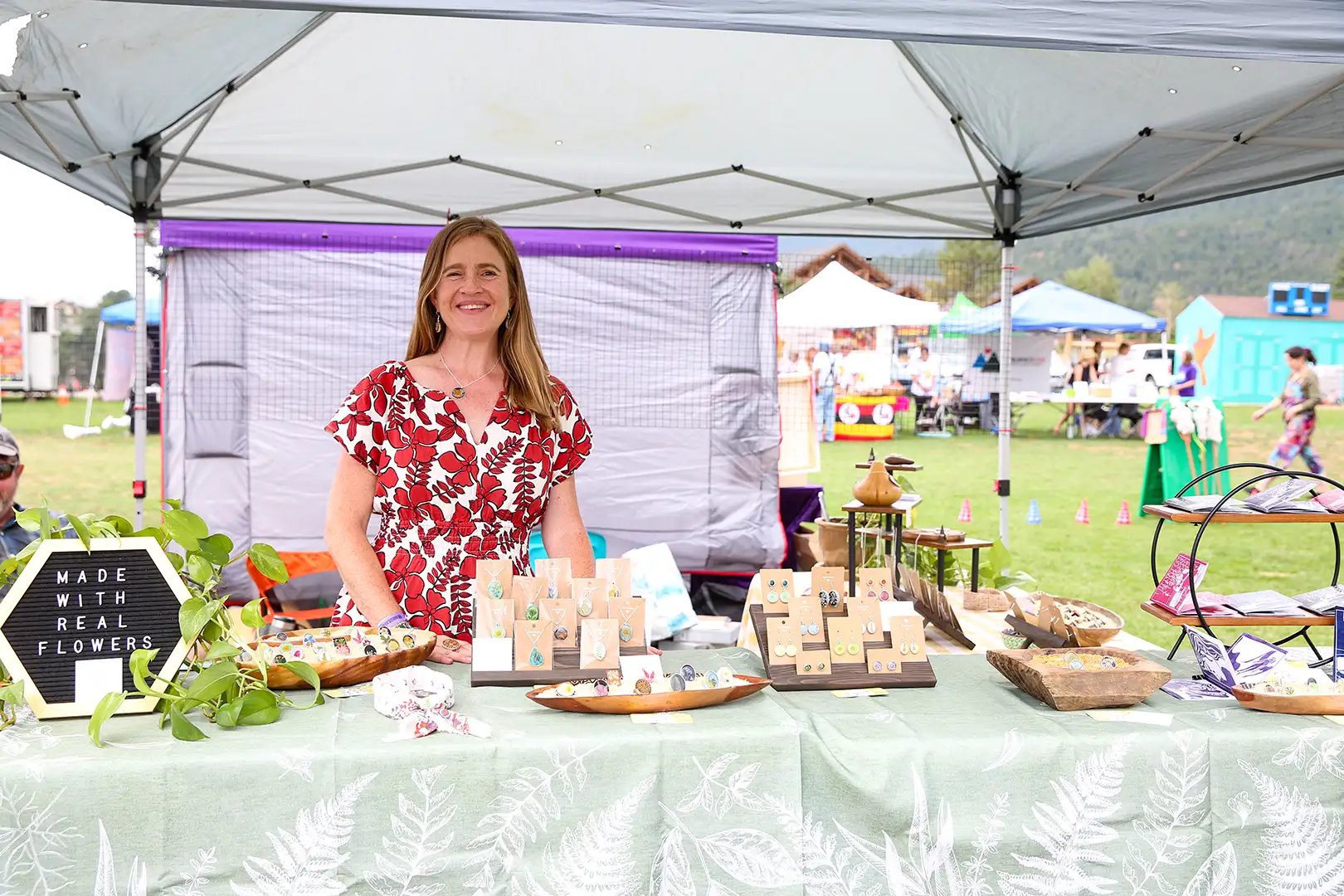 Explore a curated marketplace of local craftsmanship at Mountain Music Fest. Our Mountain Merchants represent the vibrant creative community of Evergreen and beyond—featuring everything from handmade goods and wearable art to one-of-a-kind keepsakes. Every purchase supports an artist, and every booth tells a story.
