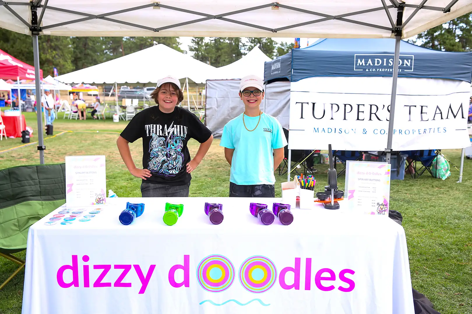 Meet Foster Gray, the 11-year-old Evergreen Middle Schooler behind Dizzy Doodles—a spin art button-making booth where creativity becomes wearable art. Half the proceeds support his dream trip to the Galápagos Islands. Born from a screen-free grounding, his “Dizzy Doodler” lets visitors craft colorful spin art, which he turns into unique buttons. More at DizzyDoodler.com.